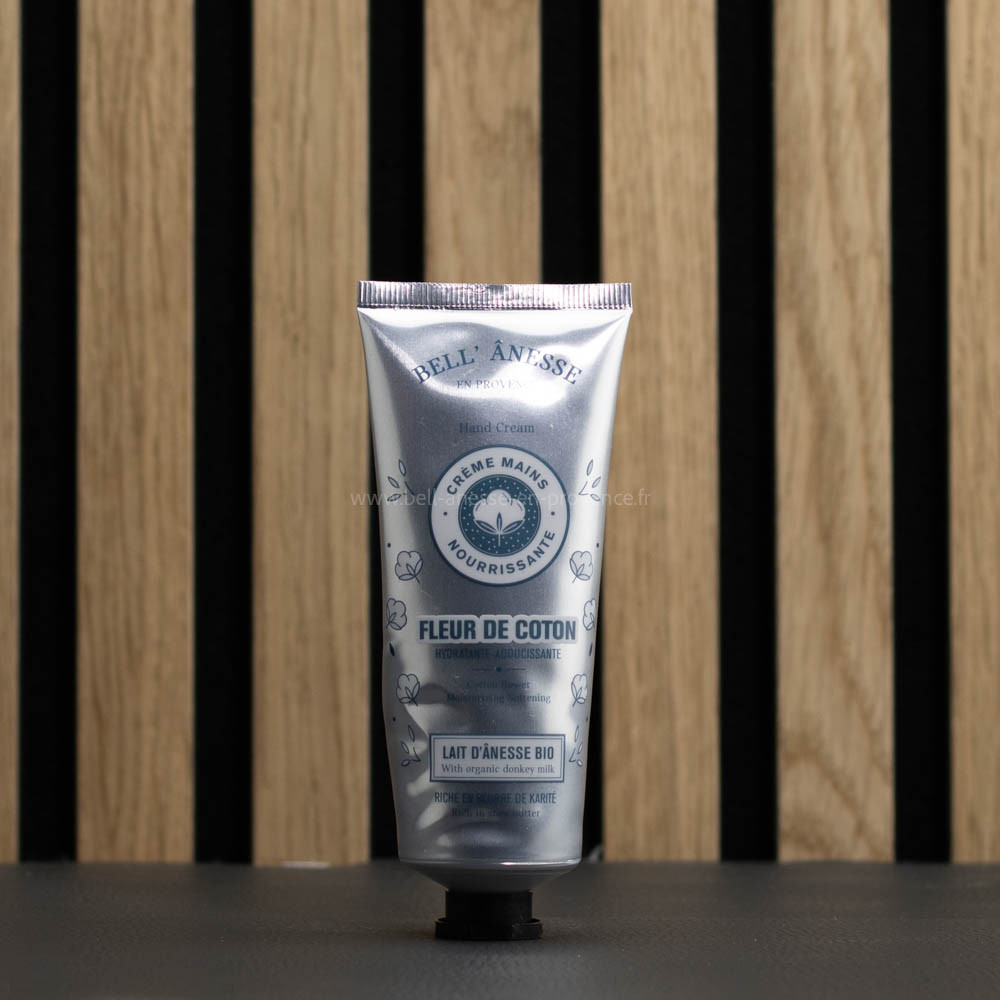 Prenez soin de vos mains avec notre Crème Mains au Lait d'Ânesse Bio et Fleur de Coton. Commandez dès maintenant pour des mains douces et hydratées !