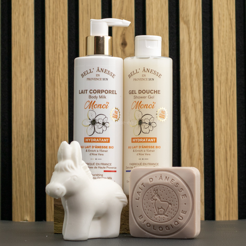 Immergez vous dans l'univers Bell Ânesse en Provence avec le Coffret Découverte au Monoï. Un ensemble de produits cosmétiques au lait d'ânesse bio, pour une peau éclatante et saine.