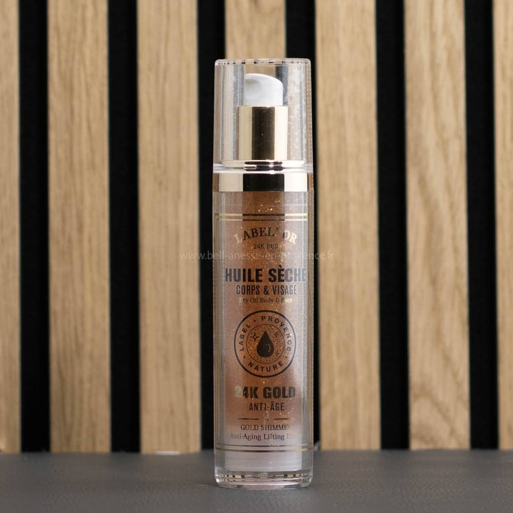 Sublimez votre peau avec l'Huile Sèche 24K Gold par Bell Anesse en Provence. Adaptée pour le visage et le corps.